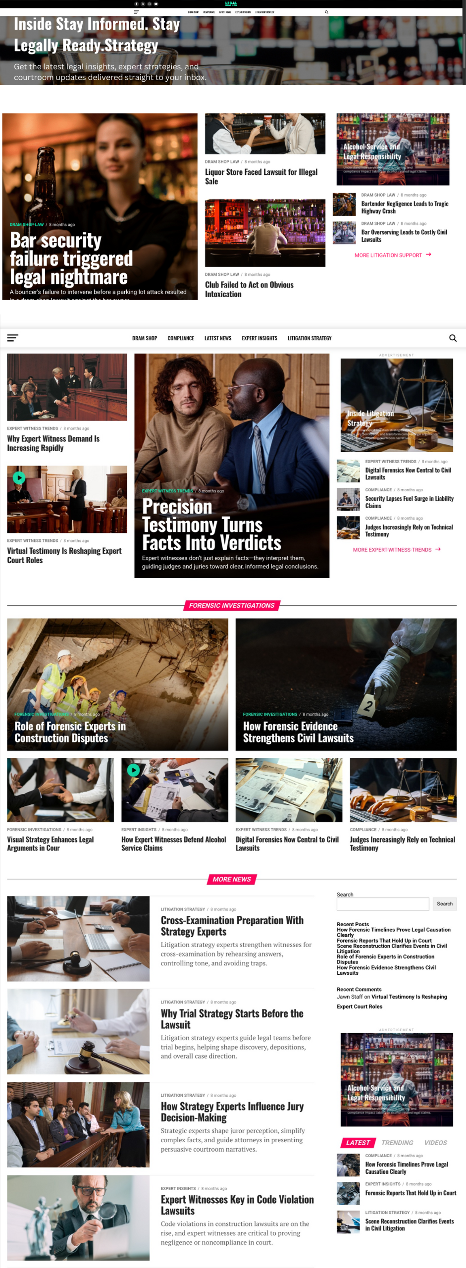 Expert Witness Marketing designed Legal News Now as a content forward platform that emphasizes clarity, structure, and professional credibility. The website uses a refined editorial layout with clear navigation, allowing visitors to quickly access articles, expert commentary, and topical legal insights without distraction. Visual hierarchy, spacing, and typography were carefully selected to support long form reading while maintaining a polished, attorney appropriate presentation.